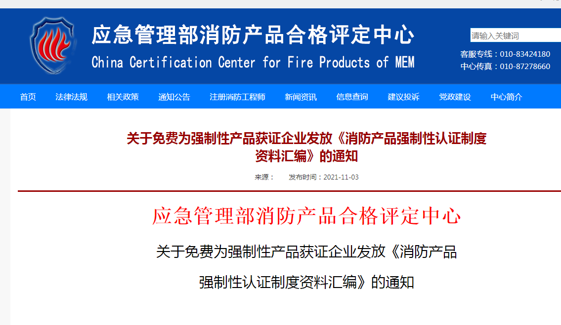 關(guān)于免費為強制性產(chǎn)品獲證企業(yè)發(fā)放《消防產(chǎn)品強制性認(rèn)證制度資料匯編》的通知
