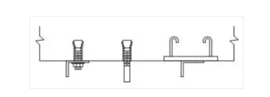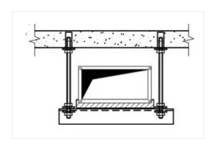 (2)支吊架的固定采用以下幾種方法:①膨脹螺栓法。本方法適用于規(guī)格較小的風管支吊架的固定。本工程支吊架固定大多數(shù)采用此法,通過在樓板、梁柱上打膨脹螺栓固定支吊架。②焊接法。本方法適用于風管規(guī)格大,使用膨脹螺栓固定不能滿足強度時,采用預埋件焊接固定支吊架。支架固定形式見下圖。